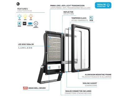 THREELINE LIP240WBF12065-5700K LIVERPOOL, Reflektorové svítidlo s optikou, IP65, 240W, osvit 120x65°