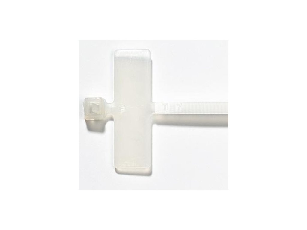 Plastový vázací pásek s popisovatelným štítkem pro rychlé značení s vysokou odolností. Lze popisovat lihovým fixem nebo speciálními identifikačními fixy. Minimální objednávka je 100 ks. Rozměr pásku: 2,4 x 103 mm Velikost štítku: 7,8 x 24,6 mm Materiál : Polyamid 6.6 Hořlavost: UL94 V-2Doplňkové parametry